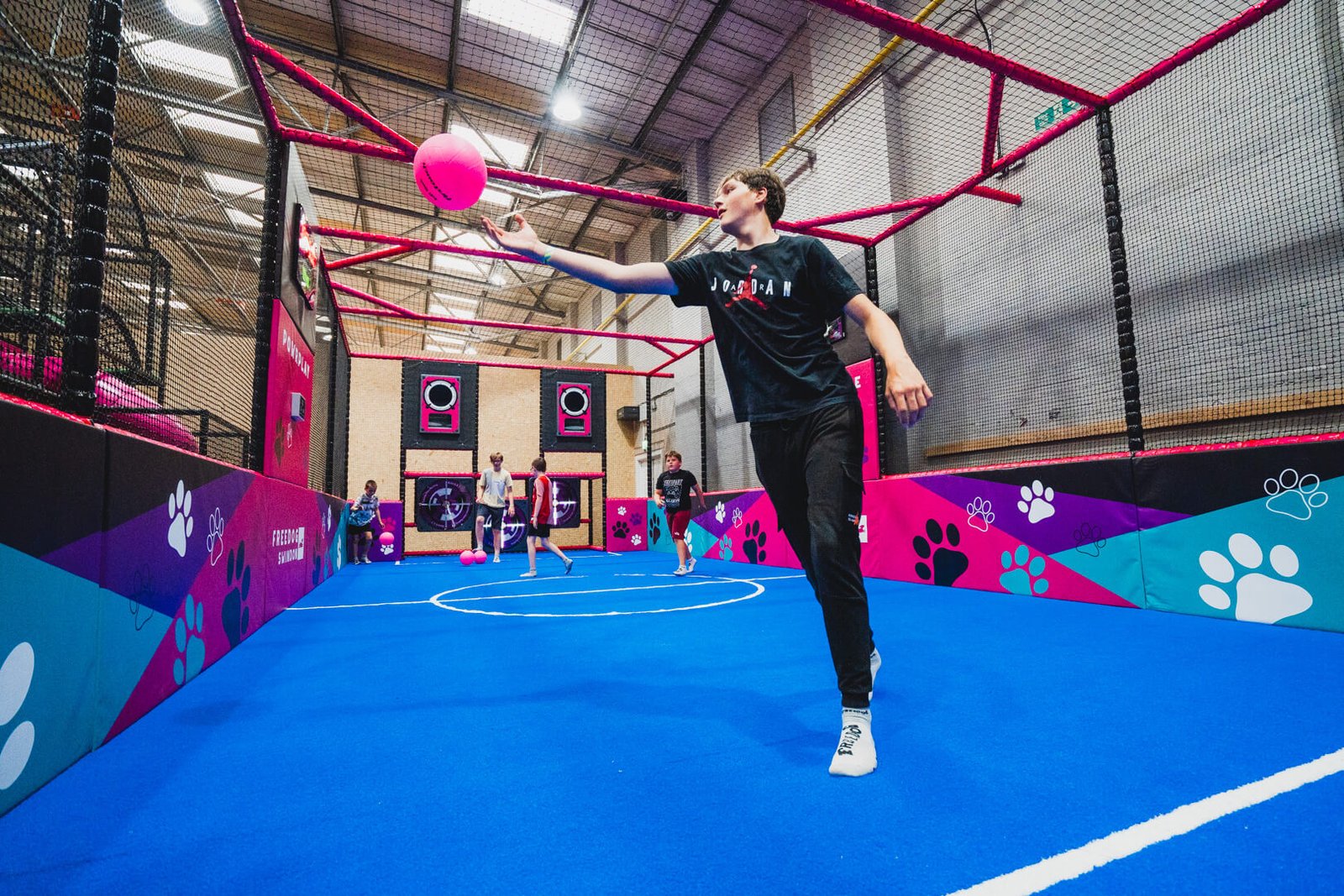 Freedog, based in Swindon, is an urban playground for not just kids, but also adults. Having some of the UK’s largest climbing and bouldering walls, the client ( Freedog ) wanted the full monty of possible football pitches for their indoor play area!