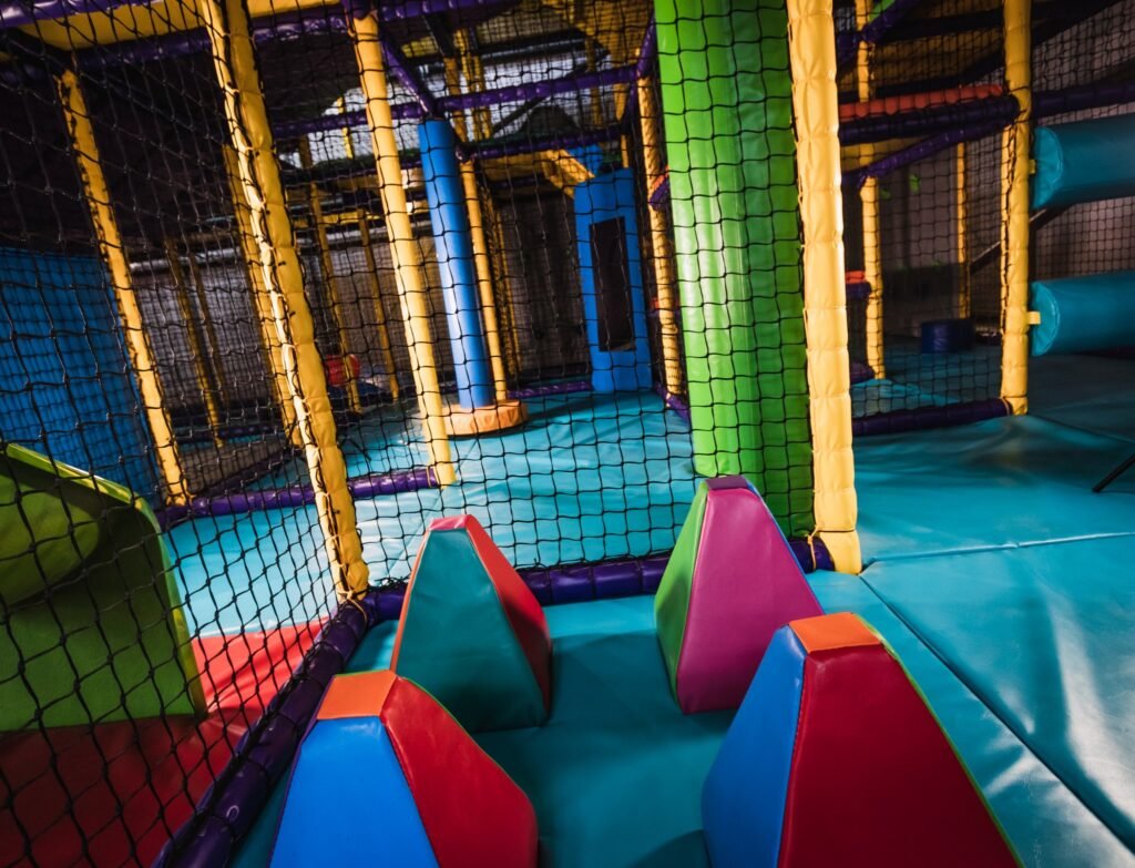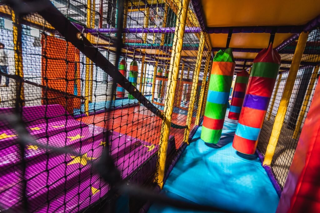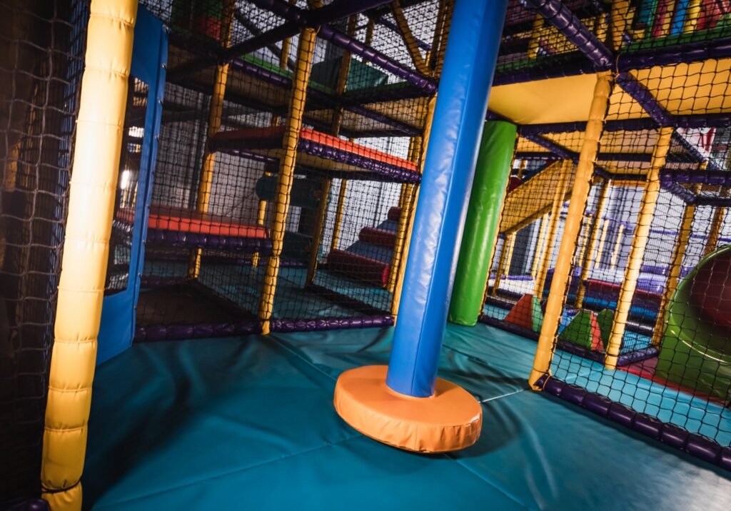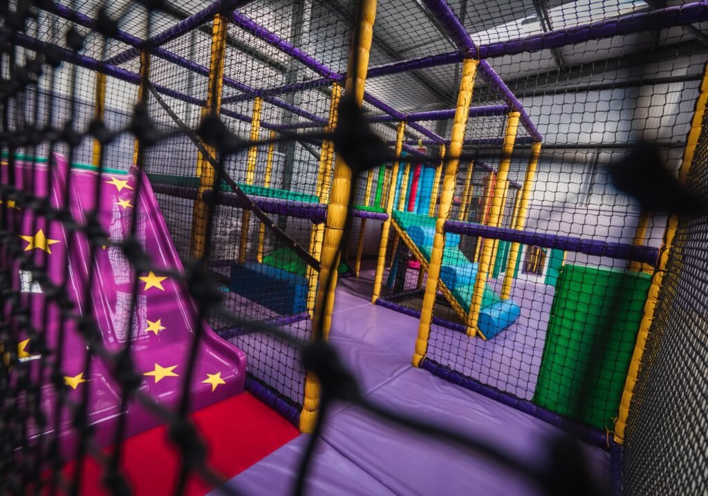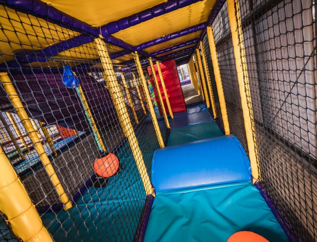 There’s not much that we didn’t do on this job. We installed an astra slide, a drop slide and a spiral slide within the main frame for older children. There are rollers, bash bags, climbing walls, spider webs and tunnels too. We even added a football pitch and jelly mountain for good measure. Toddlers and babies have plenty of opportunities for rolling, crawling, sliding and squeezing too. With games, mirrors, ball pools and hanging snakes, little ones can explore and stimulate their senses as they go. Like I said, there’s not much we didn’t do.