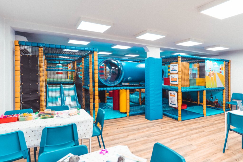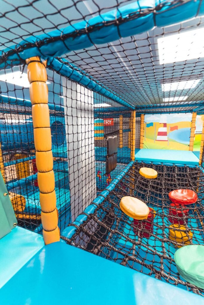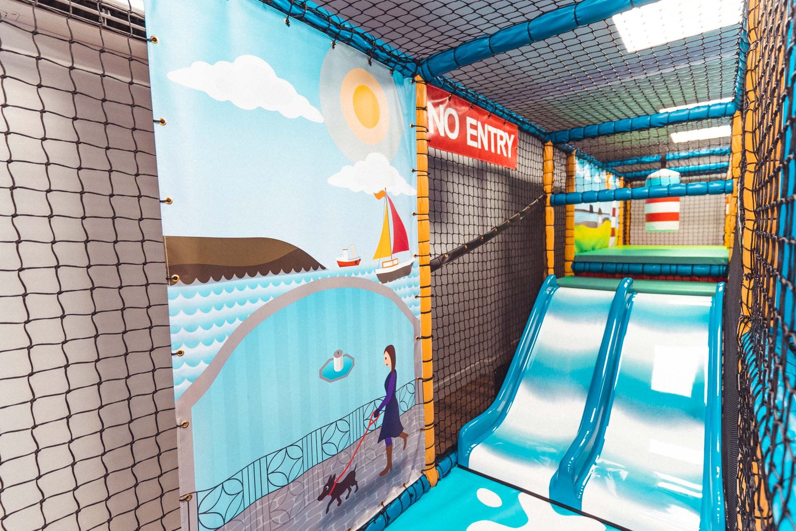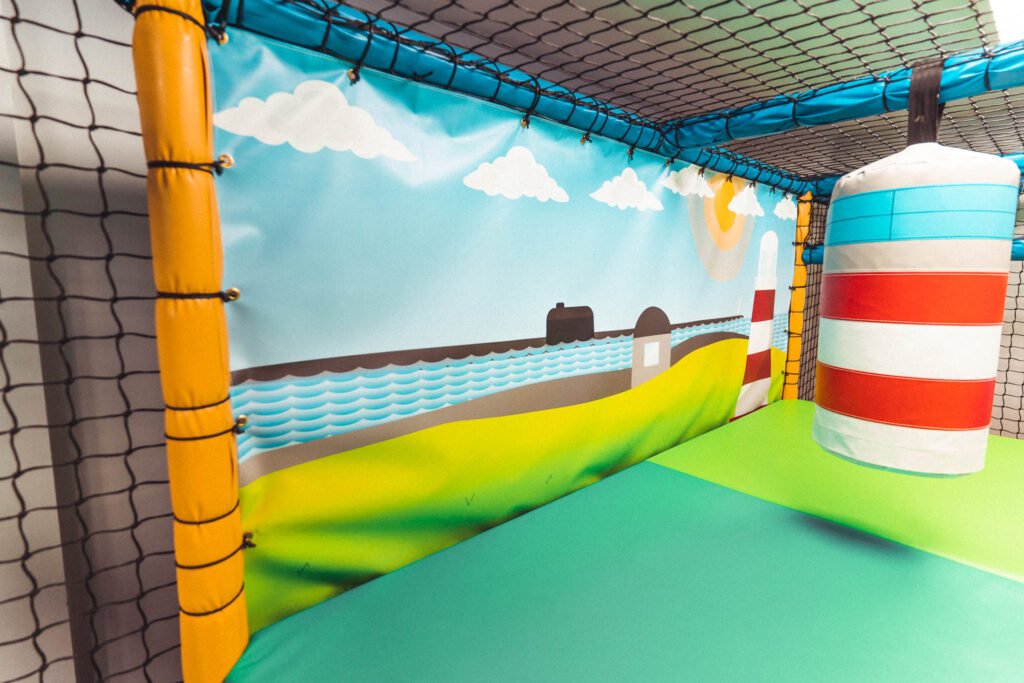 The entire baby area is themed around Plymouth Sound including fishing boat shapes and a Drakes Island Step’n’Slide with themed artwork providing the back drop.