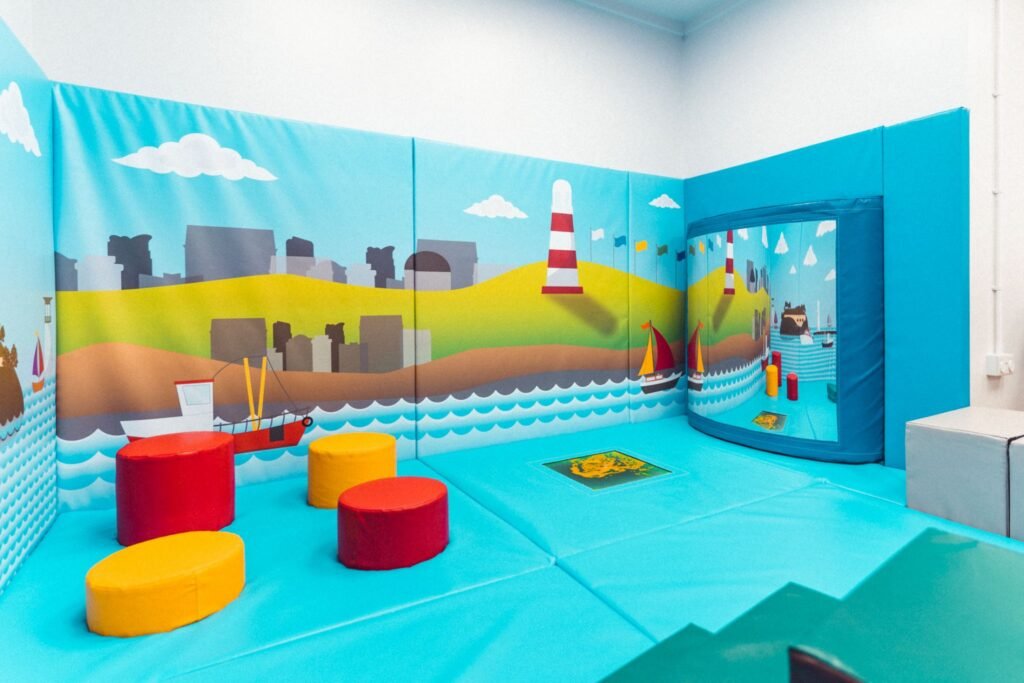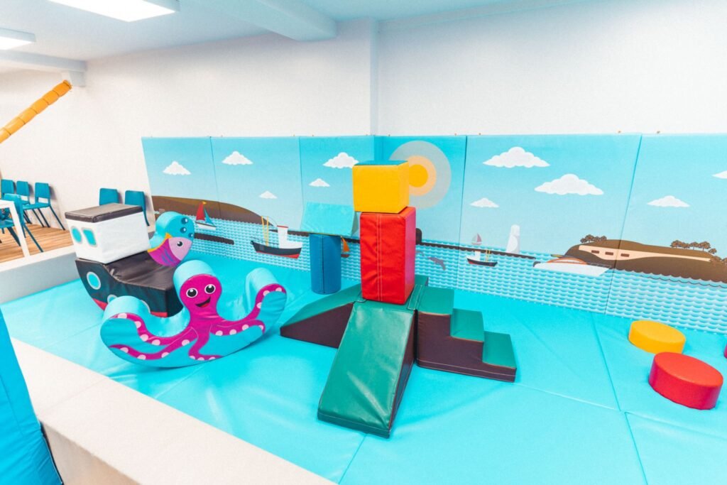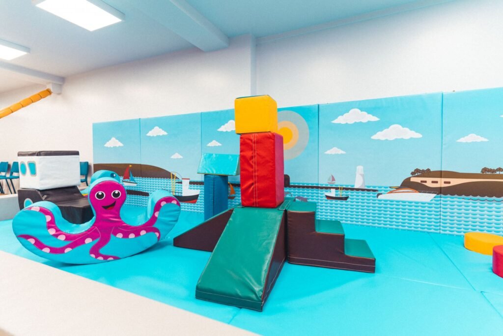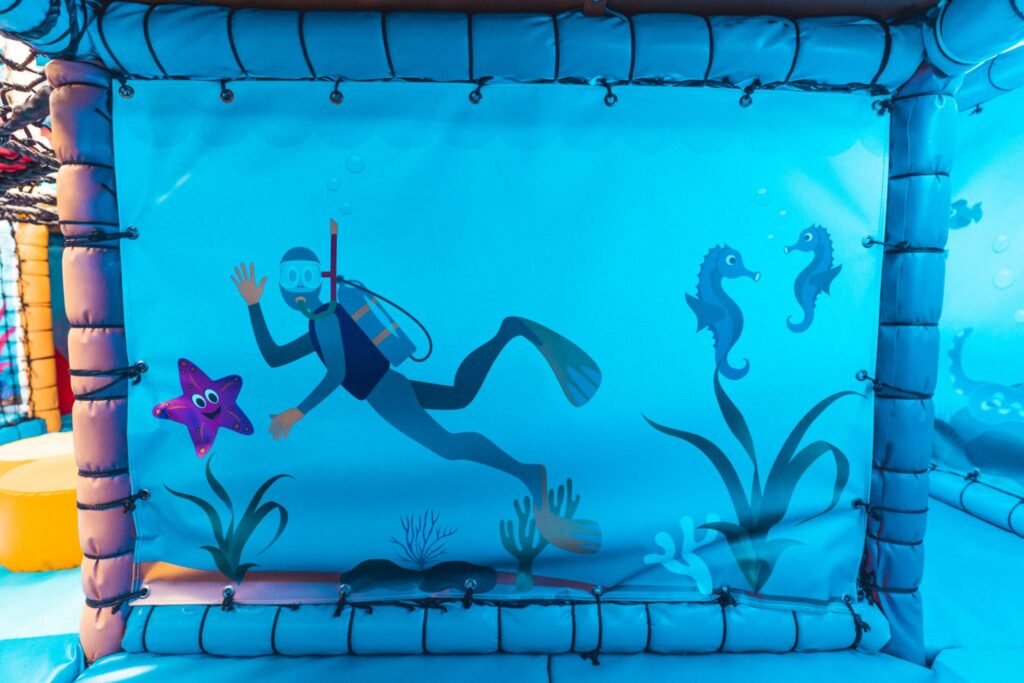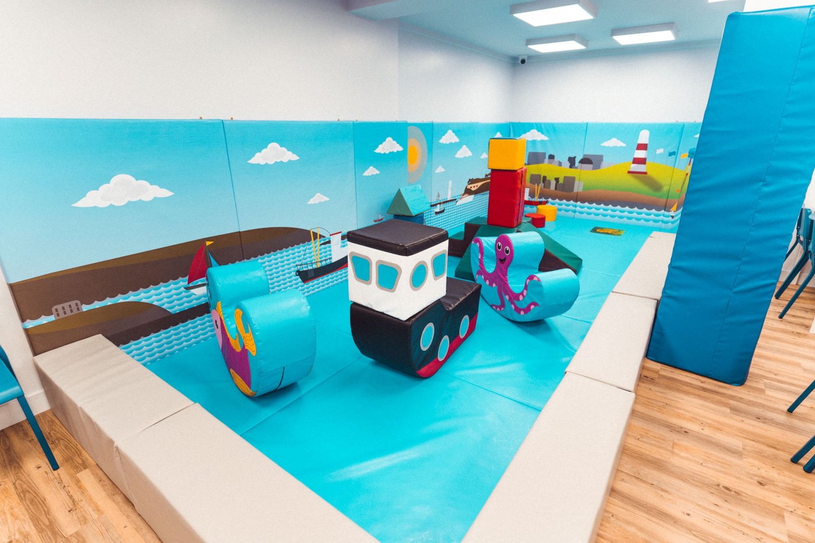 The entire baby area is themed around Plymouth Sound including fishing boat shapes and a Drakes Island Step’n’Slide with themed artwork providing the back drop.