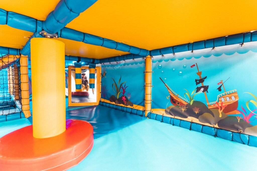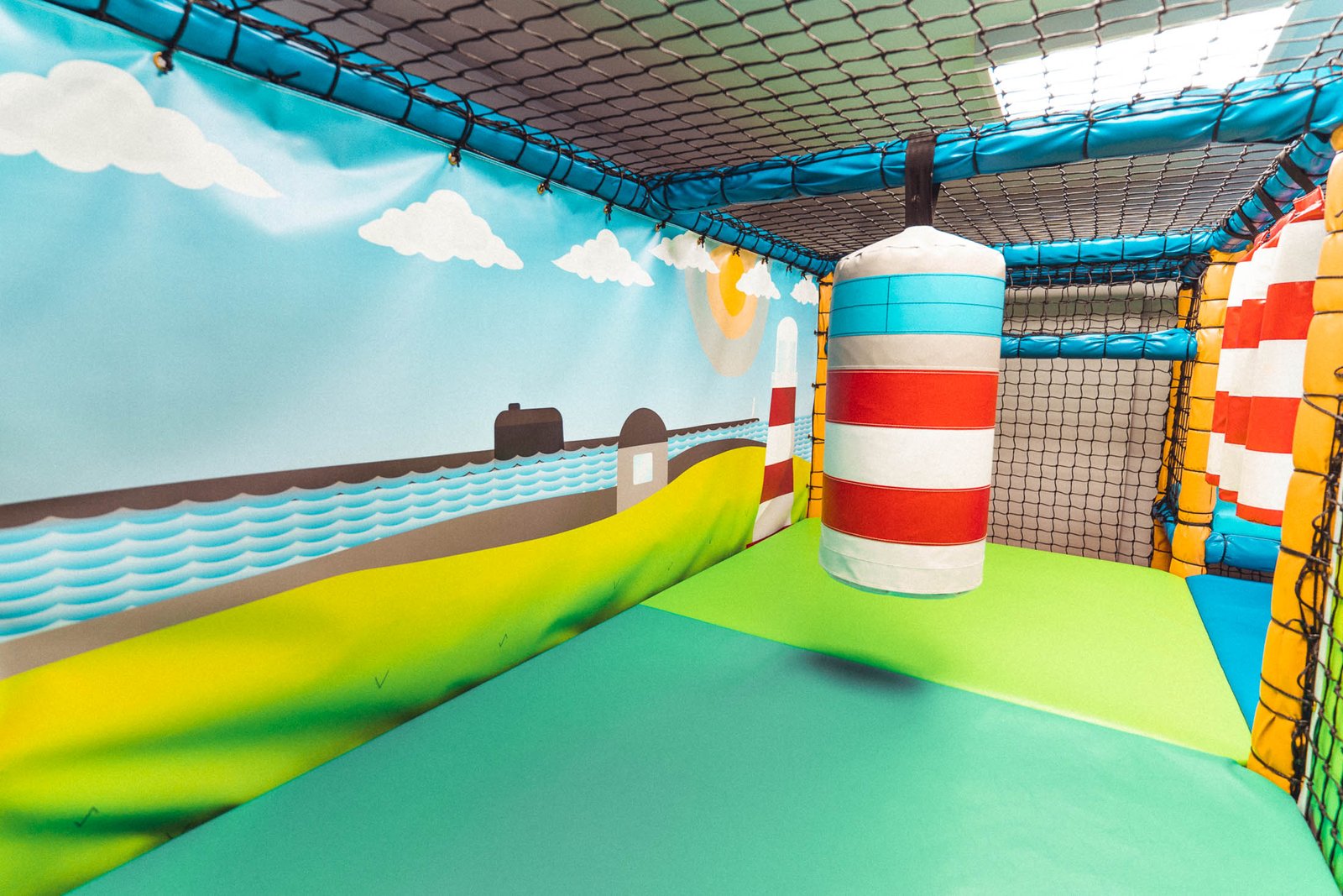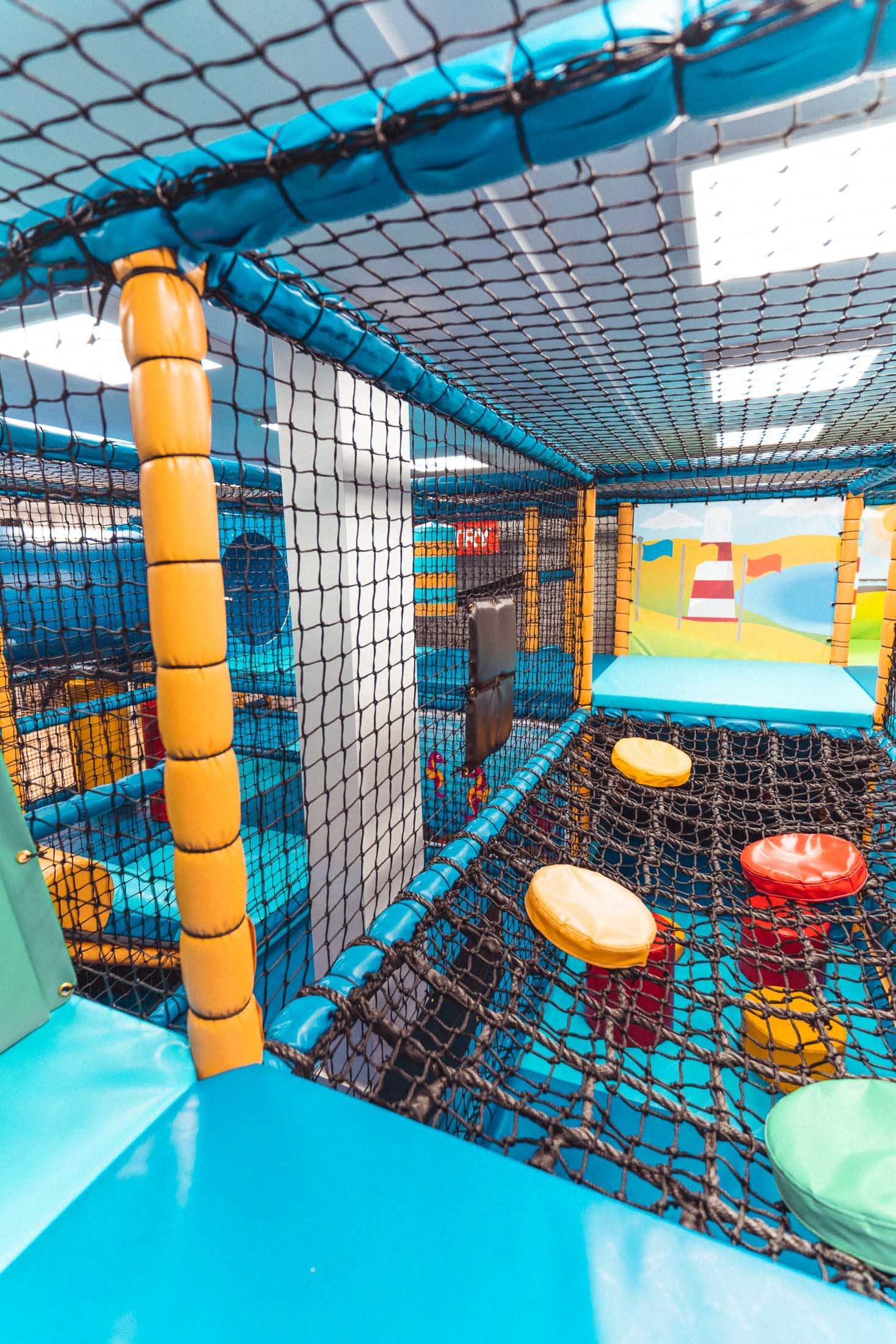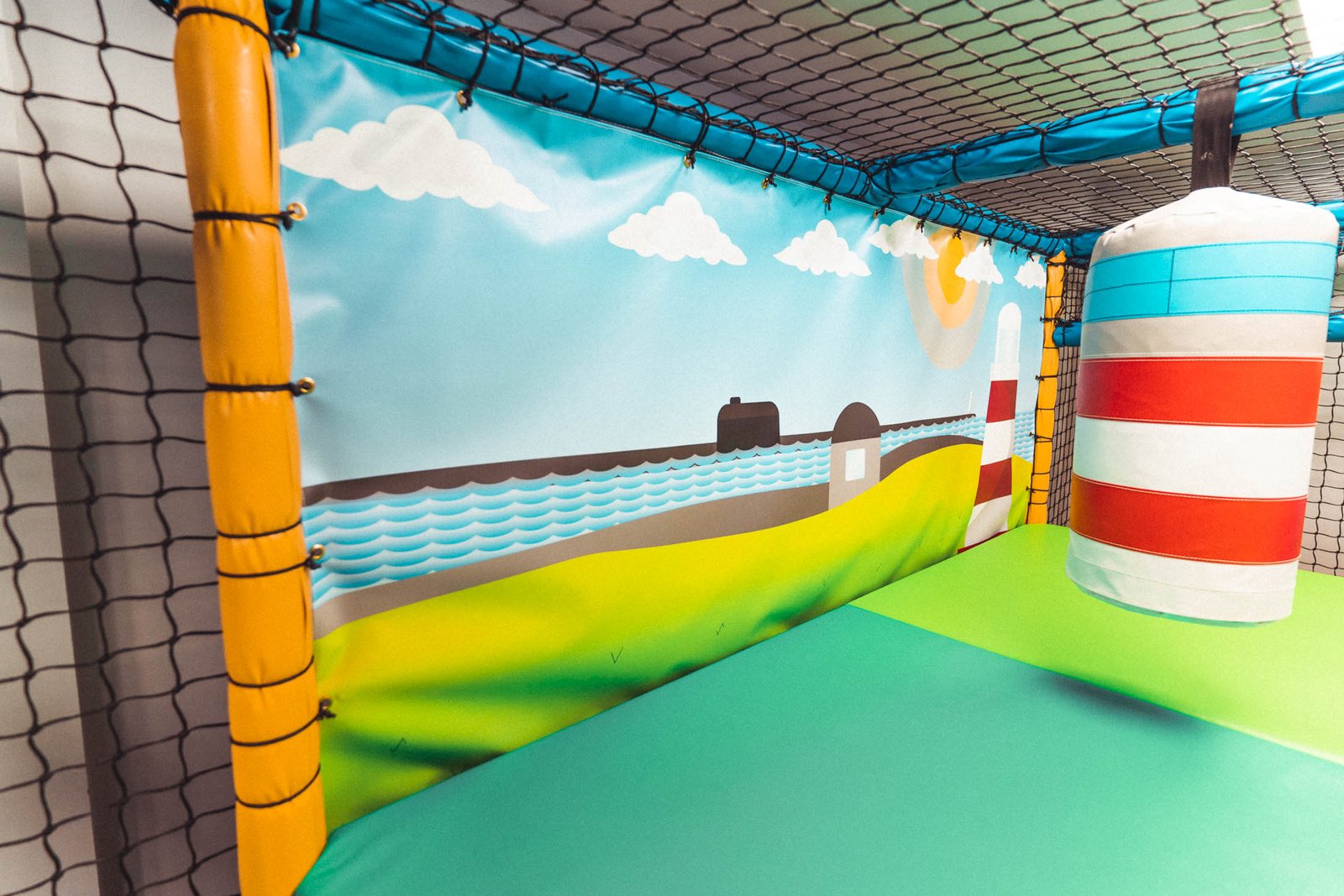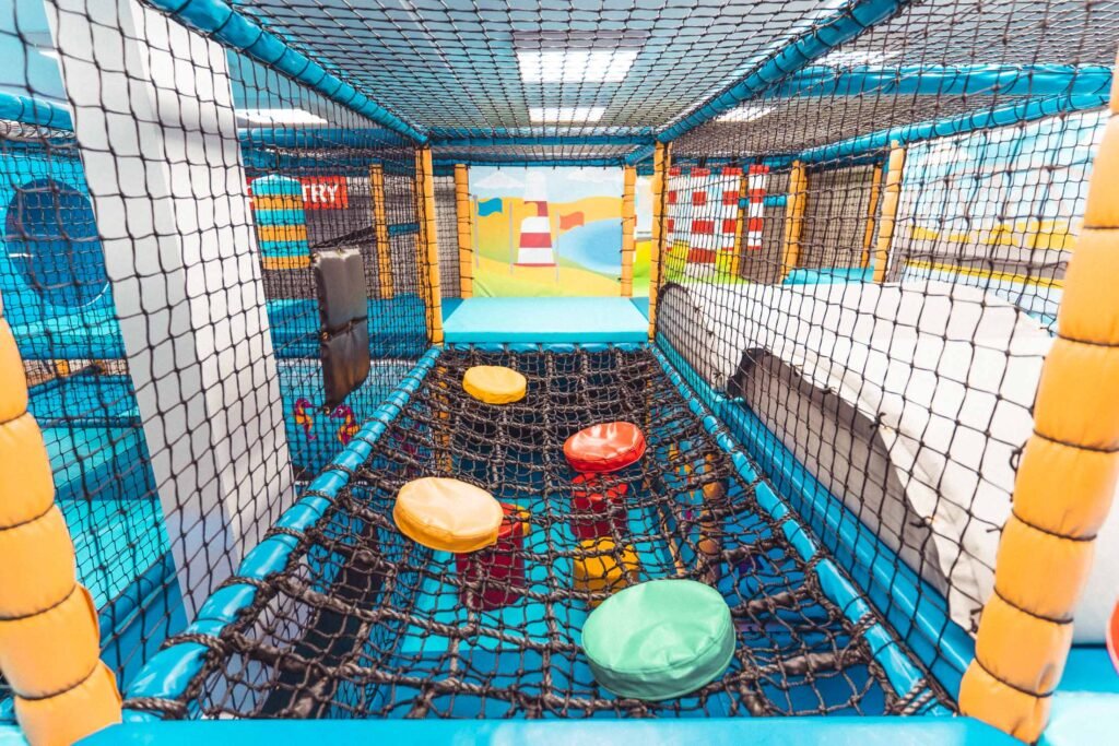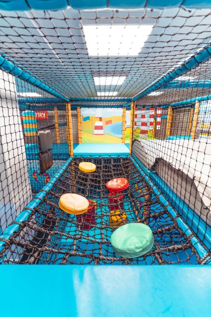 Throughout this soft play frame, there are nods and references to all the features that make up Britain’s Ocean City. Slide into Tinside Lido, visit the Barbican harbour, cross the Brunel Bridge or explore Plymouth Hoe with its Lighthouse themed bash bags, this frame has it all.